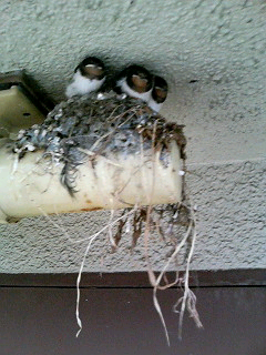 写真は家の近所で撮影した巣立ち間近のツバメの巣。